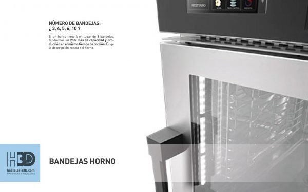 Es algo obvio: si un horno tiene 4 en lugar de 3 bandejas, tendremos un 25% más de capacidad y producción en el mismo tiempo de cocción. Exige la descripción exacta del horno. De igual forma el horno puede venir con autolavado, con grill y con varias opciones extras que incrementan el precio.
