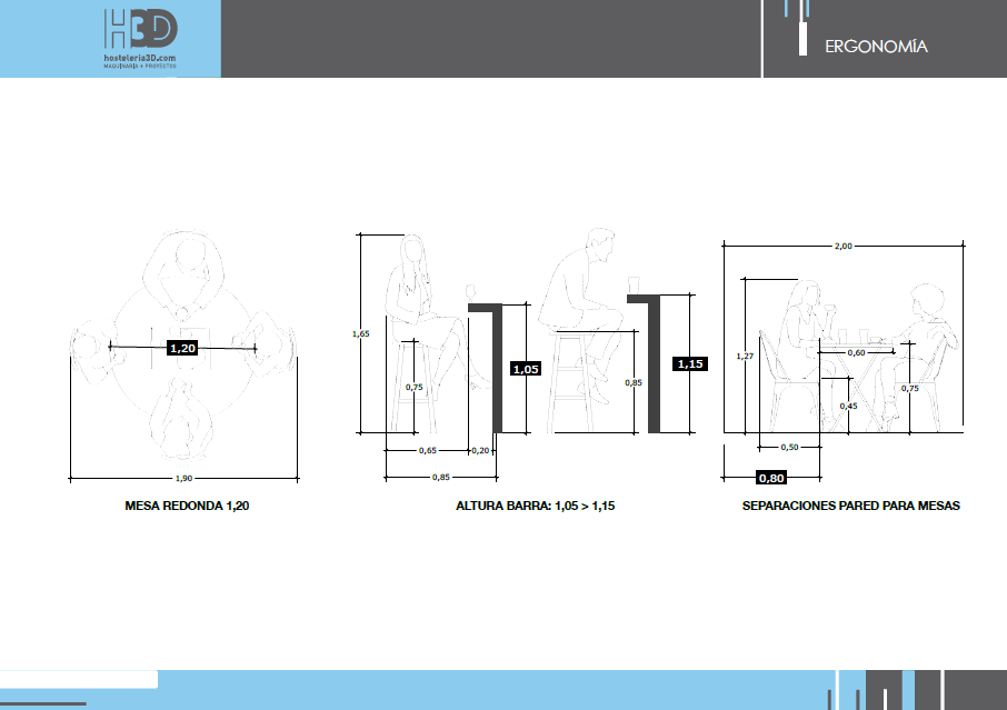 Existen unos mínimos de paso en cada espacio de cocina industrial, que varían en base al tamaño de la misma. De la misma forma la ubicación y altura de los elementos debe ser la correcta, permitiendo al cocinero reducir movimientos y esfuerzos en sus labores y lograr posturas no dañinas y naturales.