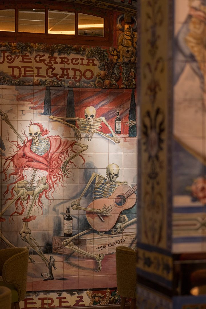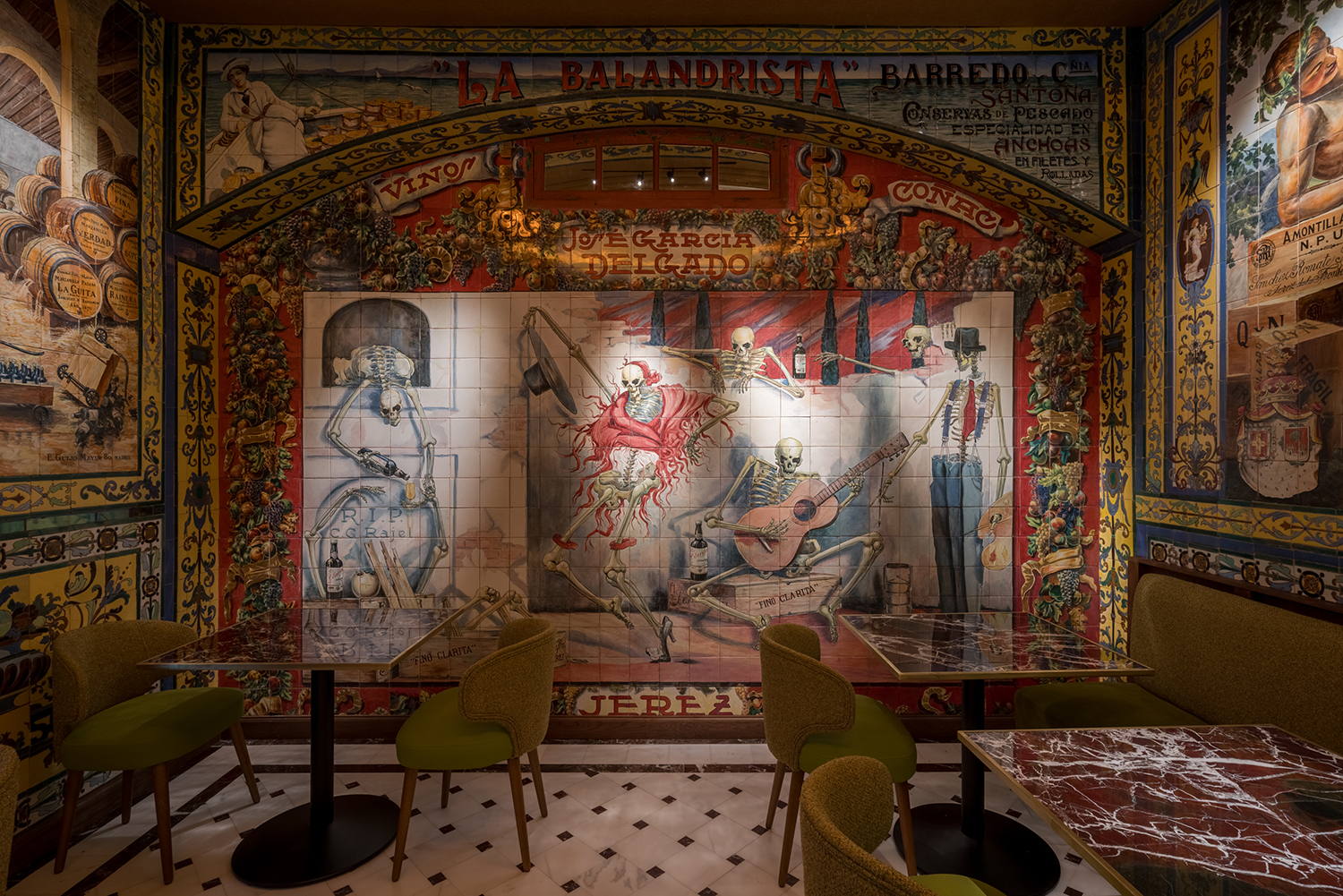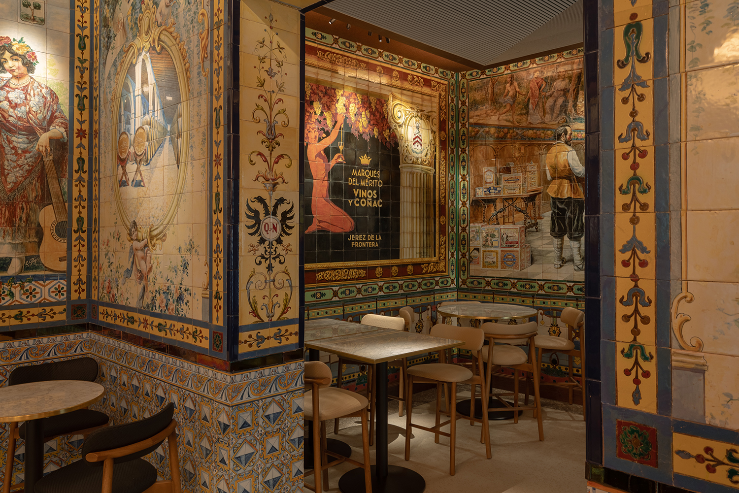 La mítica taberna dispone de 600 m² útiles, con diez estancias y tres plantas. Los murales son obra de los artistas Enrique Guijo, Juan Ruiz de Luna y Rajel y Alfonso Romero,nombre de los ceramistas más reputados del primer tercio del siglo XX. Personajes ilustres como Alfonso XIII, toreros como Ignacio Sánchez Mejías, Federico García Lorca, Manolete y Ava Gadner… un punto de encuentro de artistas y amantes del flamenco frecuentaban la taberna, en un espacio con más de 100 años de historia. Realidad y ficción se mezclan para dar vida a las historias de fiestas eternas, alcohol y cante en sus recónditos espacios.