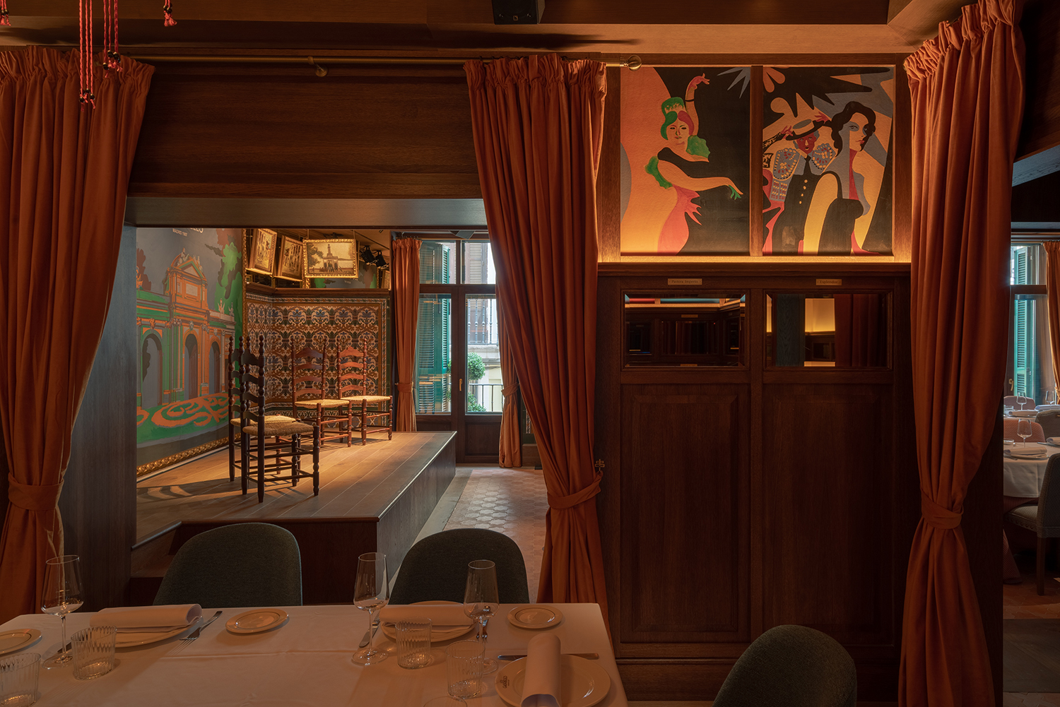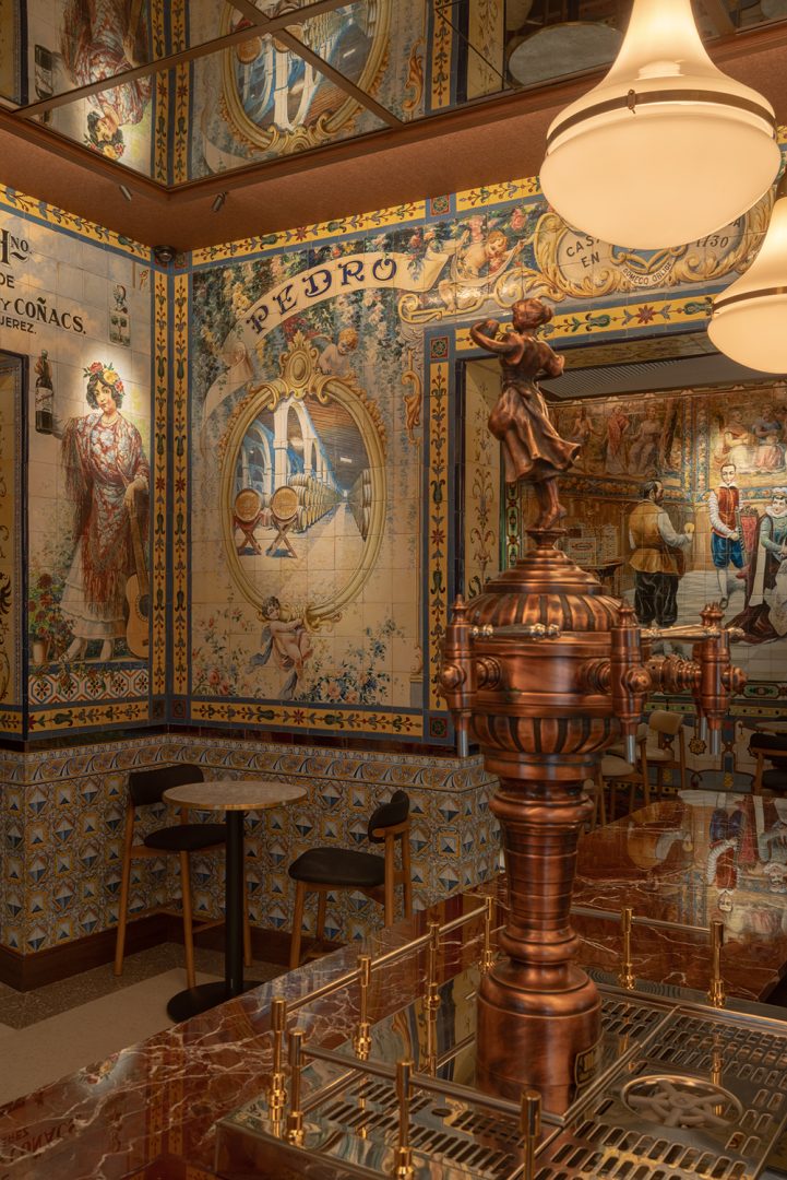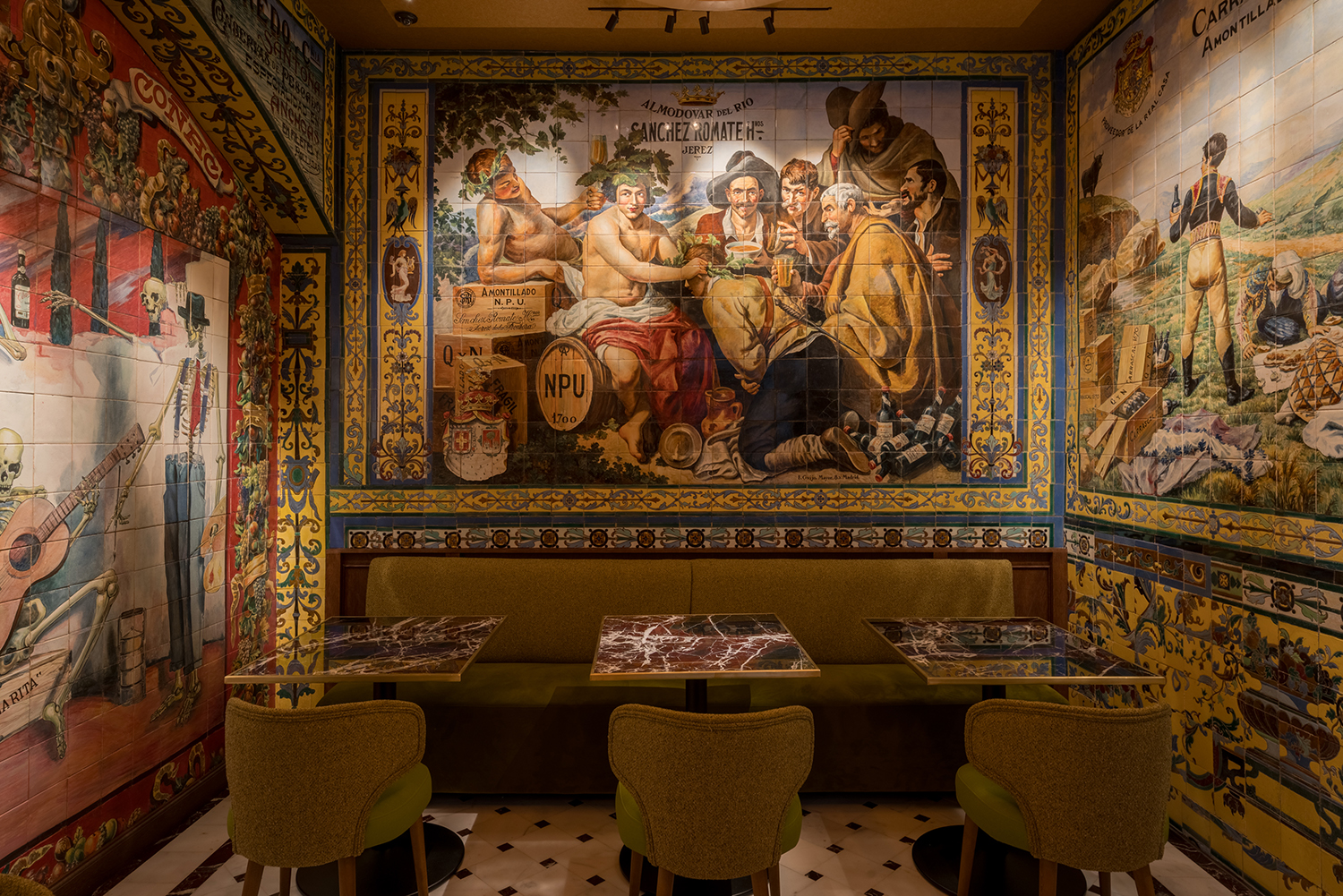 La mítica taberna dispone de 600 m² útiles, con diez estancias y tres plantas. Los murales son obra de los artistas Enrique Guijo, Juan Ruiz de Luna y Rajel y Alfonso Romero,nombre de los ceramistas más reputados del primer tercio del siglo XX. Personajes ilustres como Alfonso XIII, toreros como Ignacio Sánchez Mejías, Federico García Lorca, Manolete y Ava Gadner… un punto de encuentro de artistas y amantes del flamenco frecuentaban la taberna, en un espacio con más de 100 años de historia. Realidad y ficción se mezclan para dar vida a las historias de fiestas eternas, alcohol y cante en sus recónditos espacios.