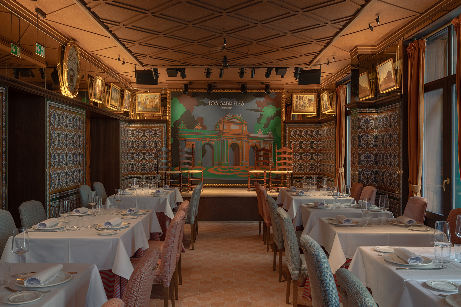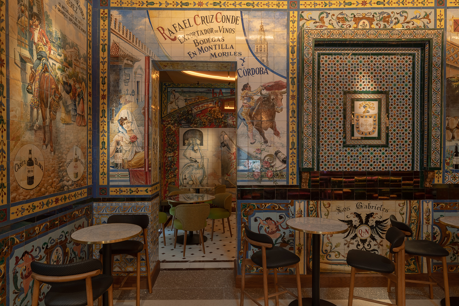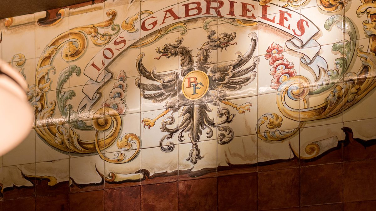 La Taberna Los Gabrieles abrió sus puertas en 1907 como “colmado para servir comidas y celebrar veladas de cante y baile flamenco”. Se convirtió en uno de los templos del flamenco en Madrid, y fue muy visitado por su magnífica decoración de azulejos, considerado por muchos estudiosos como “la Capilla Sixtina de la azulejería”.