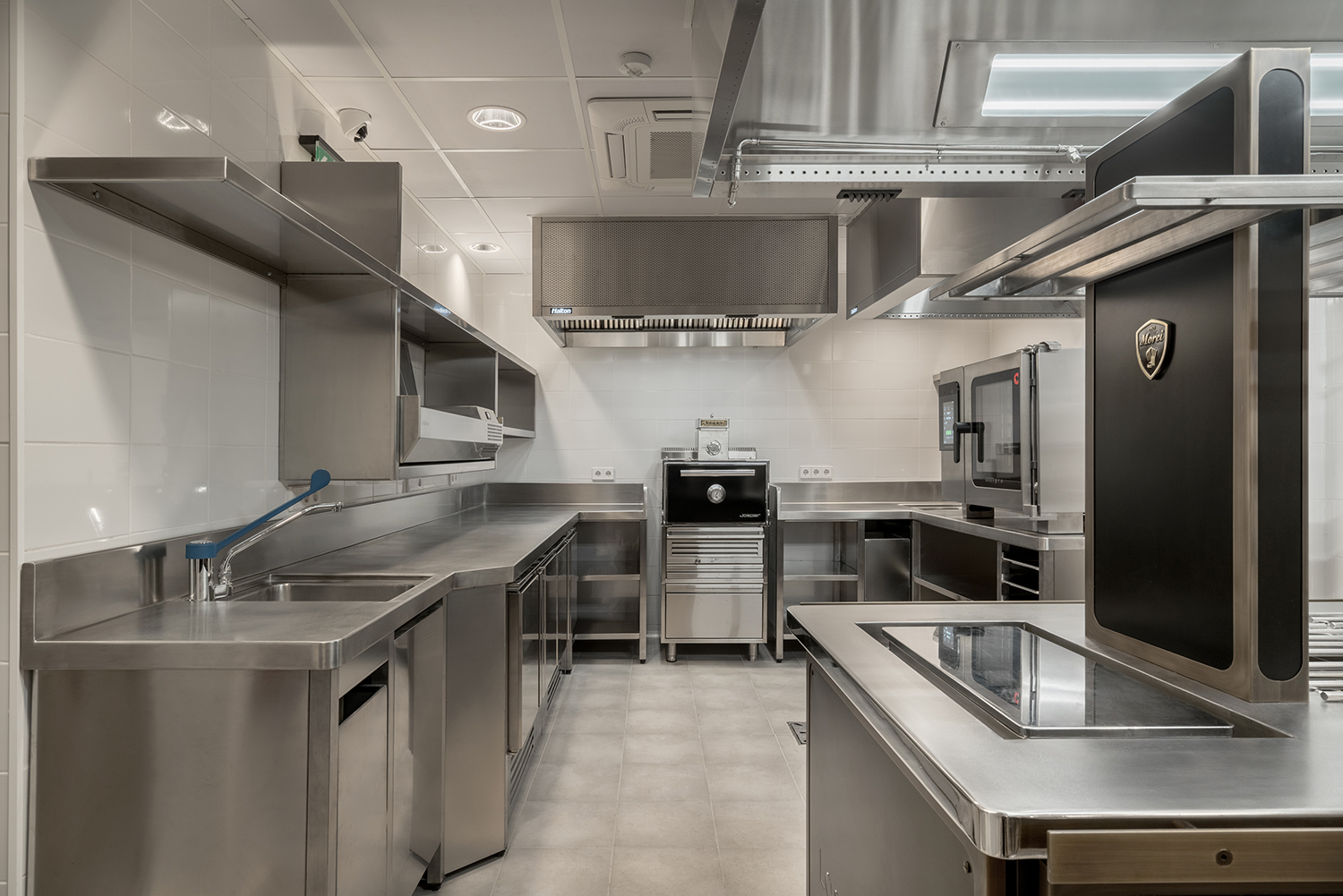 Premisa fundamental ha sido lograr la máxima eficiencia en producción con los equipos y el máximo confort y protección para la salud y ergonomía de los usuarios, con una cocina de diseño funcional y bello que inspira la creatividad
